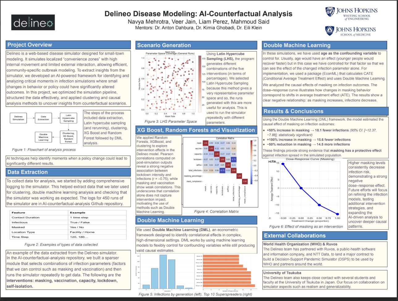 Working with WHO and Ruvos to make a disease modelling platform that can demonstrate the spread of diseases at a small town level with different interventions. Presented at JHU Design Day and DREAMS, won Dean's Design Award in Computer Science. Read more here.